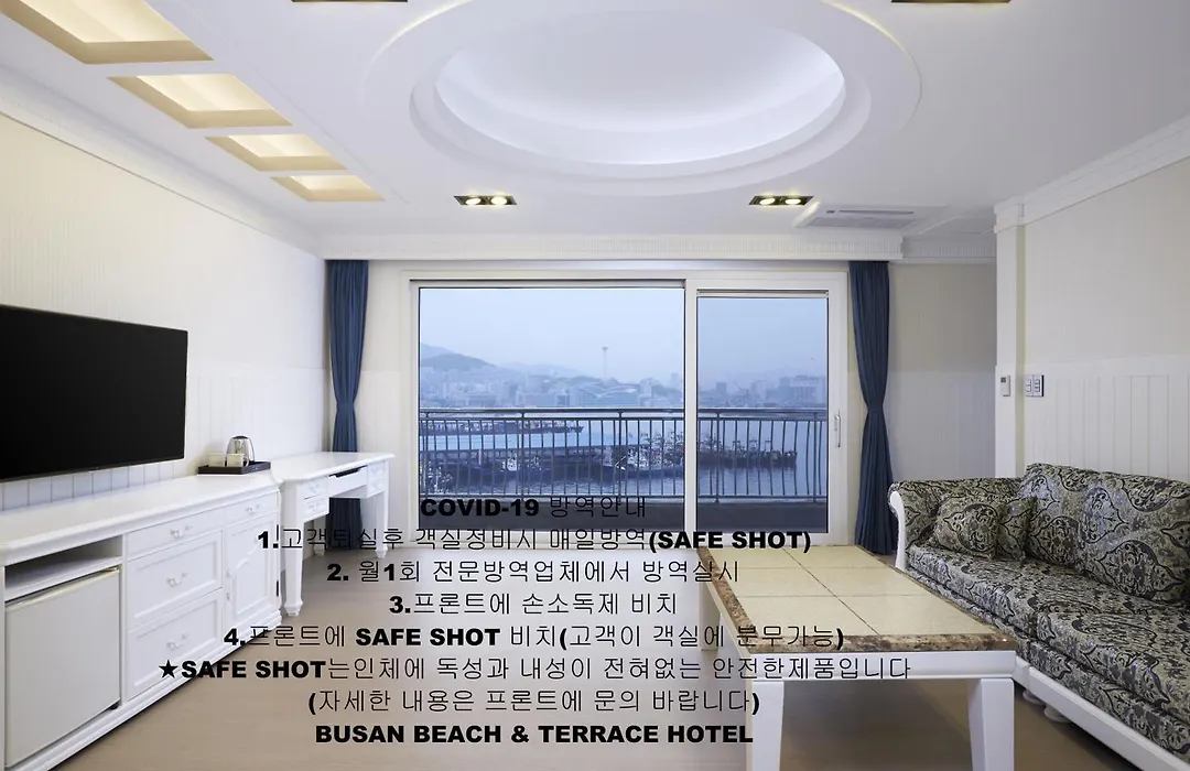 3つ星Busan Beach Hotel Busan Songdoにはミニバー、ミニバー とテレビがあります。 モダンな家具も飾られています。
